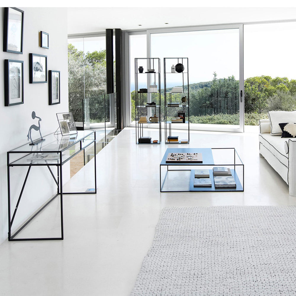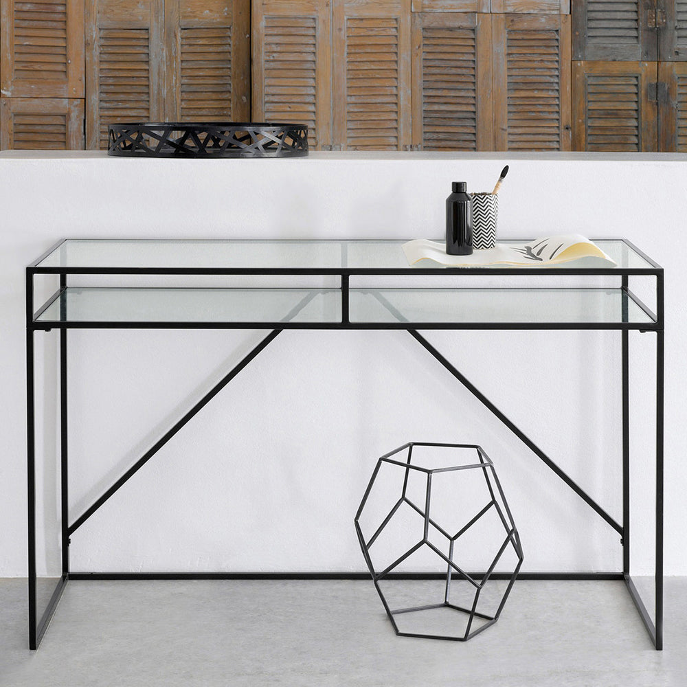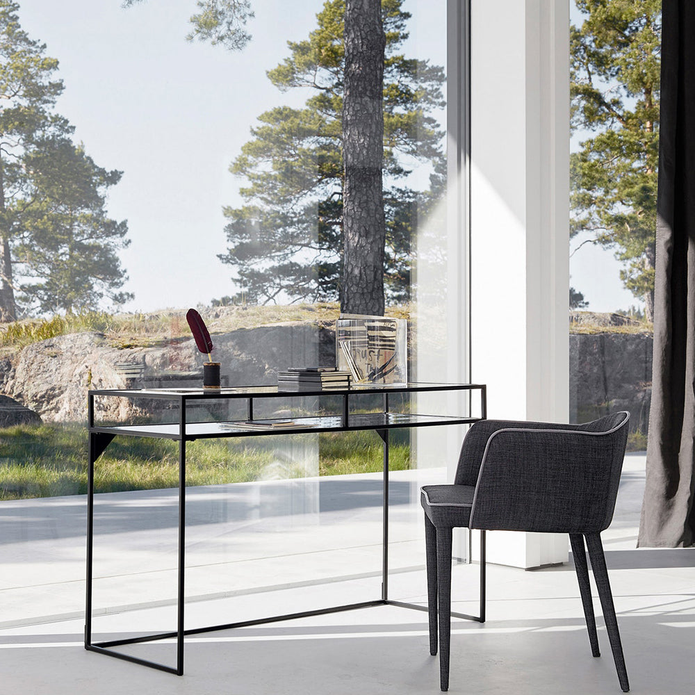 Schreibtisch aus Metall mit klarer, moderner Silhouette und großzügiger Arbeitsfläche. Stabiler Rahmen mit viel Beinfreiheit, offene Rückseite für kabelfreundliches Setup von Laptop, Monitor und Lampe. Glatte, pflegeleichte Oberfläche, standfest, bodenschonende Gleiter. Ideal fürs Homeoffice, Jugendzimmer oder Studio und gut kombinierbar mit Holz- und Metallelementen.